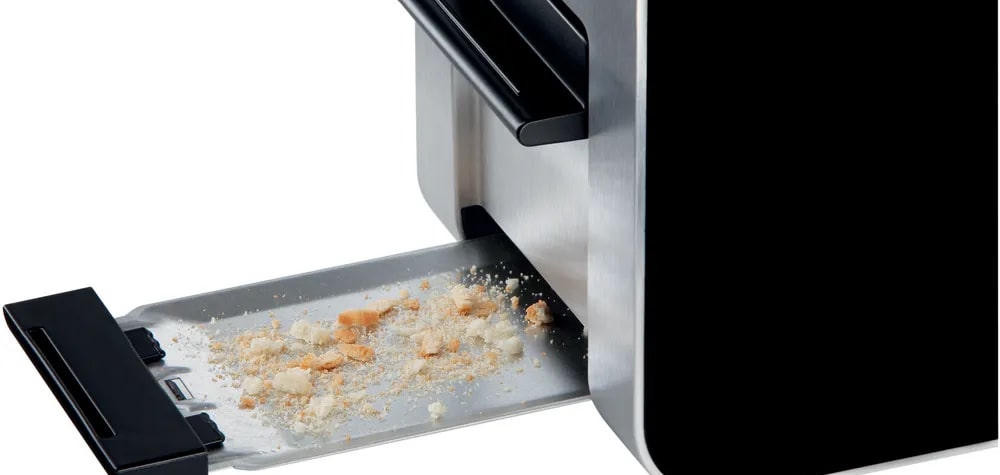 В практичной части продуманы решения, облегчающие обслуживание и хранение: выдвижной съёмный поддон для крошек упрощает чистку, а интегрированная решётка предназначена для подогрева булочек и булочек к завтраку. Отсек под сетевой шнур позволяет аккуратно убрать провод длиной 1.05 м, когда прибор не используется, сохраняя порядок на столе. Автоматическое отключение предусмотрено на случай застревания тостов, что повышает уровень безопасности и защищает электронику.