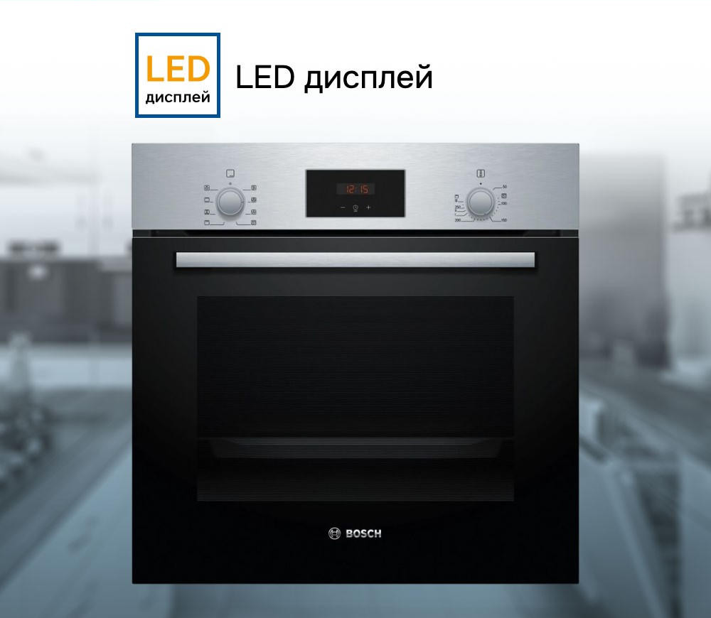 Управление духовым шкафом осуществляется с помощью сенсорных поворотных элементов. На LED-дисплее отображается необходимая информация, а также работает многофункциональные часы Easy Clock. Встроенный таймер поможет контролировать время приготовления.