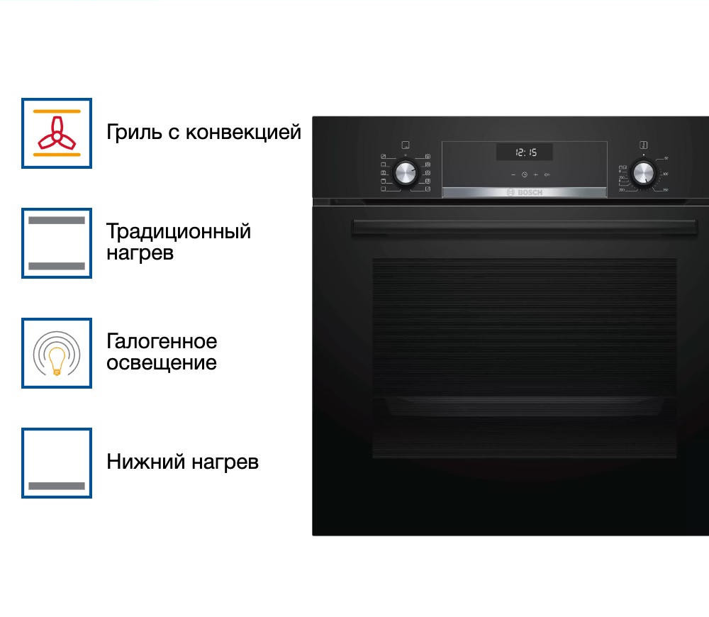 Духовой шкаф BOSCH HBJ558YB0Q относится к типу электрических. Он выпущен в линейке Serie 6, которая отличается дополнительными удобными функциями и интересными технологическими решениями, а также безопасностью. Например, благодаря тройному остеклению температура фасада не превышает 40 градусов.