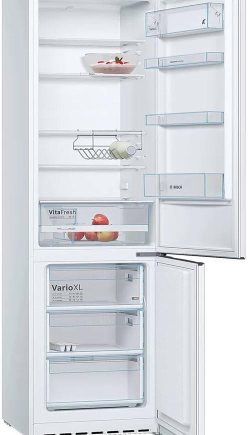 Двухкамерный холодильник Bosch KGE39XW21R из линейки Serie | 4 выполнен в классическом белом цвете. Общий полезный объем двух камер составляет 351 л. Модели присвоен климатический класс SN-T. Это считается наиболее универсальным показателем, позволяя работать прибору в температурном диапазоне от +10 до +43°C.