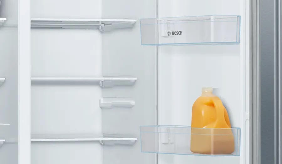 Холодильник Bosch KAN93VL30N из серии Serie 4, обладает общим полезным объемом 616 литров, из которых 371 литр приходится на холодильную камеру и 189 литров на морозильную камеру. Этот холодильник впечатляет своим современным дизайном и качественной отделкой из нержавеющей стали, которая придает ему элегантность и стиль. Управление устройством осуществляется с помощью сенсорных элементов и удобного электронного дисплея. Также холодильник оборудован функцией Home Connect, что позволяет управлять им дистанционно.