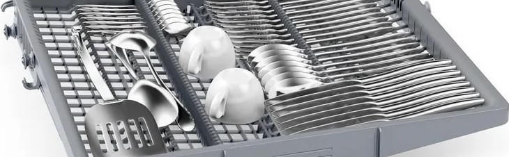 Внутренняя ванна из нержавеющей стали сочетает долговечность и гигиеничность, а продуманная конструкция трёх корзин гарантирует глубокую гибкость при расстановке посуды: верхняя полка оснащена двумя полочками для чашек, а система Rackmatic-3 позволяет менять высоту, подстраивая пространство под крупные предметы. В нижней корзине предусмотрены четыре складных направляющих для тарелок, в верхней — две складные планки, что упрощает размещение нестандартных форм и объёмных приборов.
