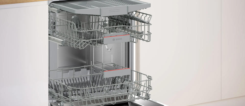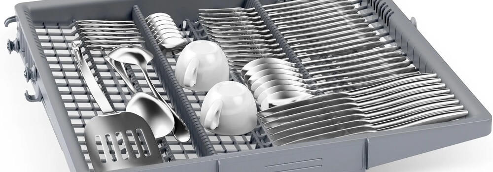 Посудомоечная машина Bosch SMV4HVX14E полностью соответствует современным требованиям к интерьеру кухни: полноразмерная конструкция продумана для удобного размещения в нише высотой 81,5–87,5 см и шириной 50 см, при глубине 55 см. Передняя панель управления выполнена из нержавеющей стали, отличается скрытым исполнением элементов, что обеспечивает минималистичный внешний вид и простоту интеграции под мебельные фасады; дисплей и сенсорные индикаторы аккуратно встроены, а кнопочные органы управления располагаются удобно, интуитивно и надёжно.