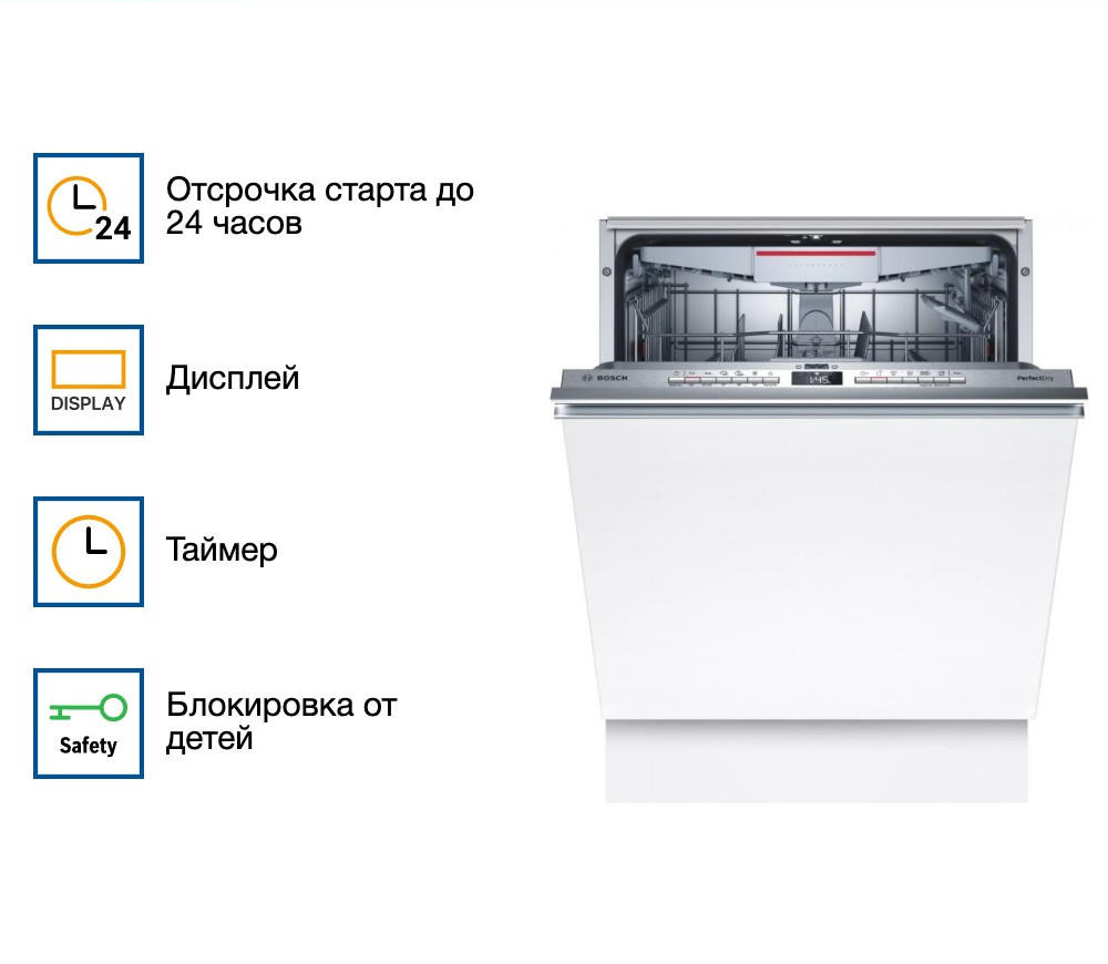Встраиваемая посудомоечная машина Bosch SBV6ZCX00E оснащена 5 программами мойки посуды. Прибор вмещает в себя до 14 комплектов и оборудован дополнительным ящиком VarioDrawer в верхней части. Home Connect упрощает запуск устройства. Теперь его можно активировать при помощи смартфона. Технология ActiveWater тщательно продумывает распределение воды, при этом снижает энергозатраты.