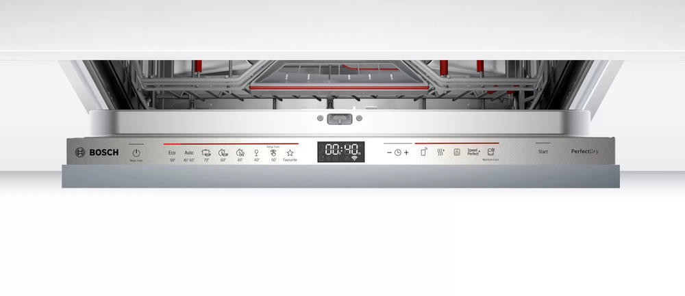 Цеолитная сушка обеспечивает быстрое и эффективное высыхание посуды. Посудомоечная машина оборудована системой ActiveWater, которая оптимизирует расход воды, и технологией защиты стекла, которая предотвращает повреждения деликатной посуды. Управление машиной осуществляется с помощью сенсорных кнопок на панели управления из нержавеющей стали. На дисплее отображаются индикаторы наличия ополаскивателя, соли и времени до окончания программы. Кроме того, есть возможность удаленного запуска через приложение на смартфоне благодаря функции Home Connect. Модель оборудована системой AquaStop, которая предотвращает протечки, и функцией блокировки от детей. Внутренний резервуар выполнен из нержавеющей стали, что обеспечивает долговечность и надежность машины. Посудомоечная машина Bosch SMD6ZCX50E предлагает высокую энергоэффективность, подтвержденную классом энергопотребления A+++. Максимальная потребляемая мощность составляет 2400 Вт, а энергопотребление за цикл - 0.83 кВт/цикл.