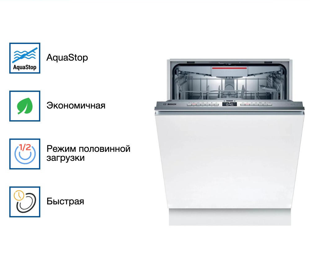 Встраиваемая посудомоечная машина Bosch SMV 4 HVX33E оснащен тихим мотором EcoSilence Drive. Благодаря стандартным размерам и современному дизайну отлично впишется в любой кухонный интерьер. За один цикл машина отмывает 13 комплектов посуды. Устройство оснащено индикаторами наличия соли и ополаскивателя. Датчик AquaSensor следит за чистотой воды после ополаскивания. Если она недостаточно чистая, то система её сливает и наполняет камеру новой.