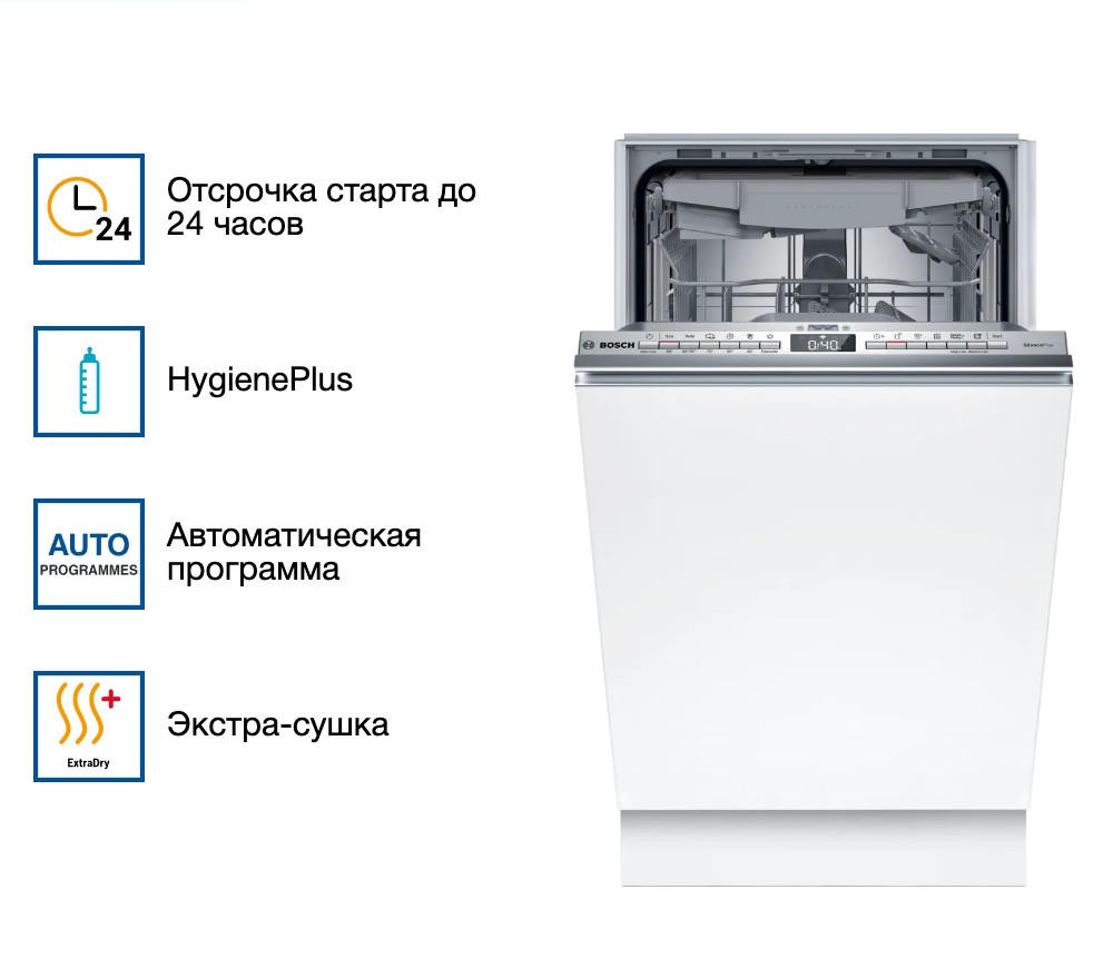 Встраиваемая посудомоечная машина Bosch SPV4HMX10E из серии Serie | 4 — это надежное и эффективное решение для современной кухни. Устройство выполнено в узком форм-факторе, что позволяет его установку даже в самых компактных пространствах.