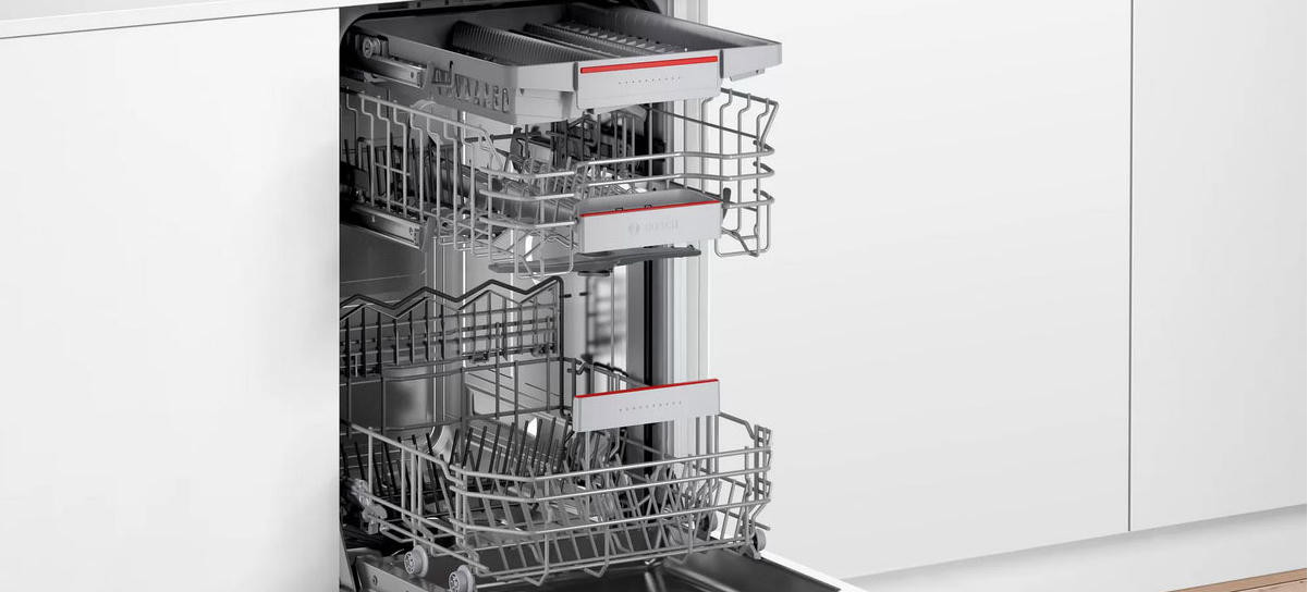 Посудомоечная машина BOSCH SPV4XMX20E — это встраиваемая модель шириной 45 см. Система защиты AquaStop сработает в случае неожиданной протечки и автоматически перекроет подачу воды. InfoLight или «Луч на полу» — это технология, которая проецирует на пол световое пятно, чтобы вы всегда были в курсе, на какой стадии работы находится прибор. Мотор EcoSilenceDrive, благодаря своей конструктивной особенности в виде отсутствия щёток, потребляет меньше электроэнергии, более долговечен и при этом издаёт меньше шума.