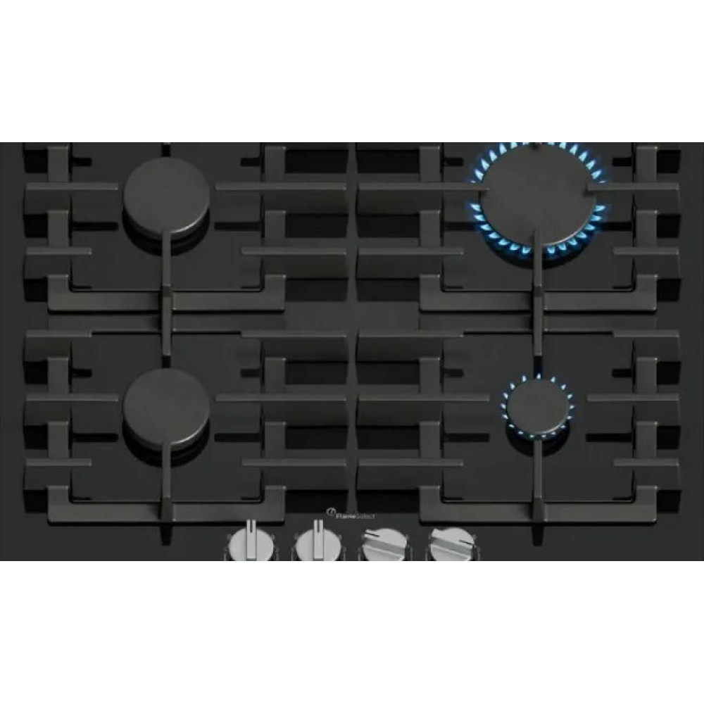 Дизайн этой варочной панели ориентирован на практичность: аккуратная черная поверхность визуально сдержанная, но выразительная, она легко интегрируется в разную цветовую гамму интерьера и не перетягивает на себя внимание. Комбинация гладкого стекла и массивных чугунных решёток создаёт баланс между изысканностью и промышленной прочностью; решётки удобно снимать для чистки, а устойчивость к механическим нагрузкам гарантирует долговечность. Девять режимов FlameSelect позволяют не только экономно расходовать топливо за счёт точной подачи газа, но и добиваться одинакового результата на всех типах посуды: от деликатных сковород до тяжелых кастрюль. Наличие автоматического поджига и термоэлектрической защиты упрощает эксплуатацию и повышает уровень комфорта в доме, особенно в семейных условиях, где важны скорость и безопасность.