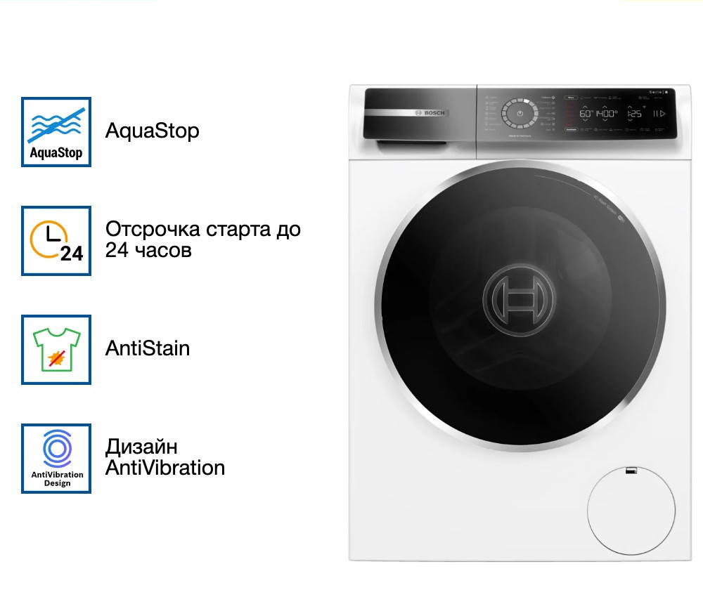 Стабильная и надежная стиральная машина Bosch WGB24400ME превратит рутину стирки в простой и удобный процесс. Произведенная в Германии, эта модель отличается высоким качеством исполнения и продуманным дизайном. Благодаря своим компактным размерам и классическому белому цвету, она легко впишется в любой интерьер, подчеркивая его стиль и элегантность. Одним из ключевых преимуществ Bosch WGB24400ME является ее вместительность. Максимальная загрузка при стирке составляет 9 кг, что делает эту модель идеальным выбором для больших семей.