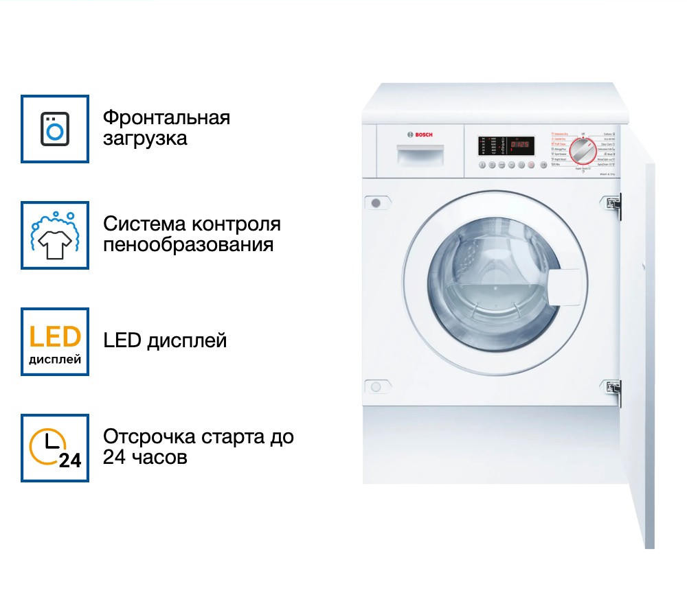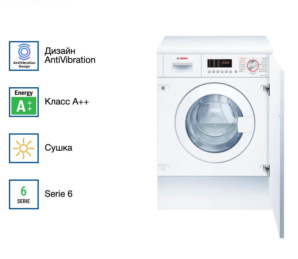 Встраиваемая стирально-сушильная машина Bosch WKD28543EU — это современное решение для тех, кто ценит комфорт и качество. Она сочетает в себе надежность и функциональность, которые являются залогом долгого срока службы. Благодаря компактным размерам, она идеально вписывается в любой интерьер, сохраняя пространство и обеспечивая эстетический вид.