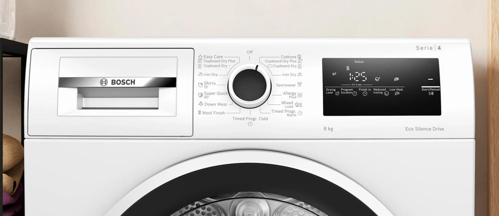 Ключевые преимущества- Эффективная конденсационная сушка с загрузкой до 8 кг и 12 программами для разных тканей.