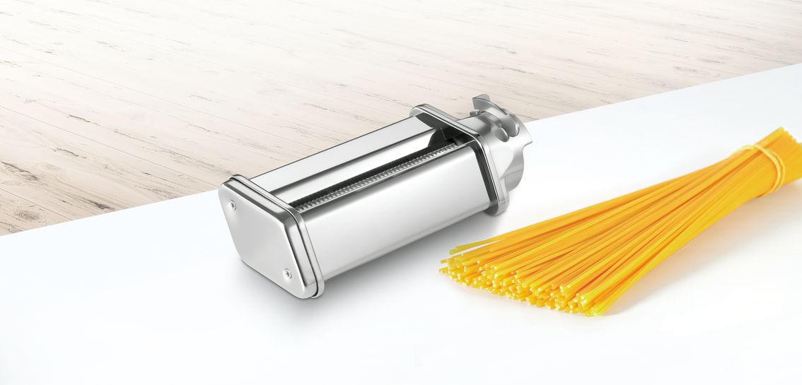 Насадка на кухонные комбайны Bosch MUZ5NV3 предназначена для приготовления спагетти и позволит с лёгкостью превратить листы теста в аккуратные домашние спагетти толщиной 1.6 мм