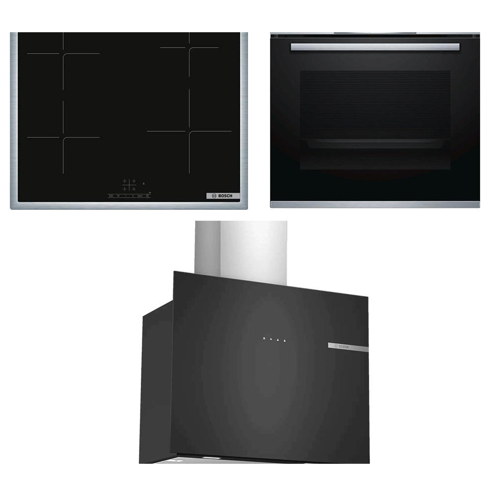 Комплект бытовой техники Bosch Serie | 4 — это идеальное решение для современной кухни, объединяющее в себе инновационные технологии, функциональность и стильный дизайн. В комплект входят индукционная варочная поверхность, электрический духовой шкаф и настенная каминная вытяжка, которые идеально сочетаются между собой и создают гармоничное пространство для приготовления пищи.