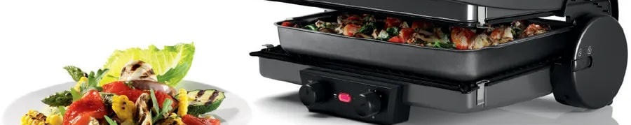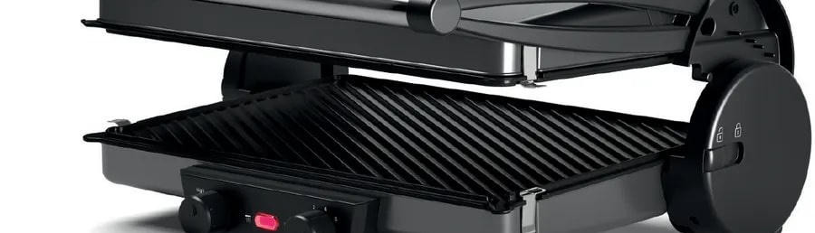 Важной особенностью гриля являются съемные алюминиевые пластины с антипригарным покрытием. Они легко моются в посудомоечной машине, что значительно упрощает процесс уборки после приготовления пищи. Большая контактная поверхность пластин (328 x 238 мм) позволяет приготовить достаточное количество пищи за один раз.