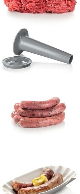 Эргономичность использования обеспечивается наличием пяти насадок, включая формовочные диски для фарша с отверстиями диаметром 3, 4.8 и 8 мм. Также в комплект входят насадки для приготовления колбас и кеббе, что открывает новые горизонты для кулинарных экспериментов. Универсальный толкатель и обычный загрузочный лоток из пластика делают процесс подачи продуктов удобным и безопасным.