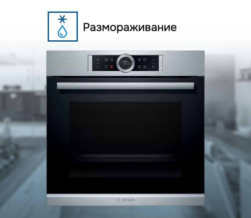 Духовой шкаф Bosch HBG675BS1 — это электрическая независимая модель из линейки Serie | 8. Ее внутренний объем составляет 71 литр, благодаря чему есть возможность запекать большие блюда. Она оформлена в черном цвете, благодаря чему отлично впишется в любой современный кухонный интерьер — например, в стиле хай-тек. Управление осуществляется посредством использования сенсорных кнопок и Control Ring.