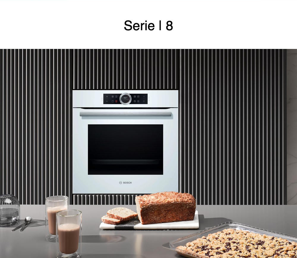 Духовой шкаф Bosch HBG675BW1 — это электрическая независимая модель из линейки Serie | 8. Ее внутренний объем составляет 71 литр, благодаря чему есть возможность запекать большие блюда. Она оформлена в белом цвете, благодаря чему отлично впишется в любой современный кухонный интерьер — например, в стиле хай-тек. Управление осуществляется посредством использования сенсорных кнопок и Control Ring.