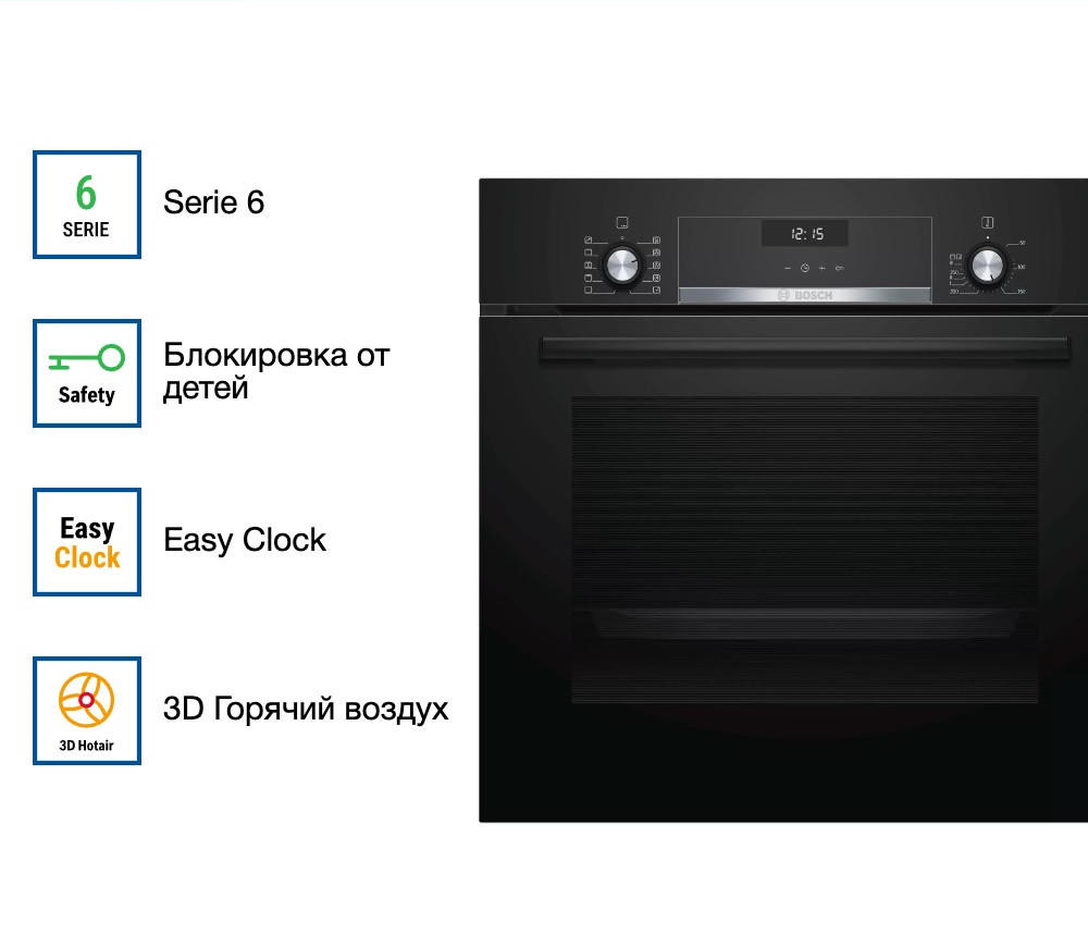 Духовой шкаф BOSCH HBJ558YB0Q относится к типу электрических. Он выпущен в линейке Serie 6, которая отличается дополнительными удобными функциями и интересными технологическими решениями, а также безопасностью. Например, благодаря тройному остеклению температура фасада не превышает 40 градусов.