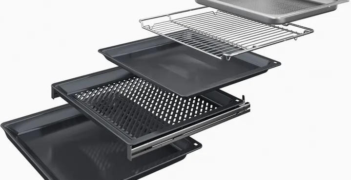 Для тех, кто ценит точность результата, предусмотрены многоточечный термощуп PerfectRoast и сенсор для выпечки PerfectBake; оба инструмента автоматически подстраивают процесс, обеспечивая равномерность прожарки и идеальную структуру изделий из теста. Меню Assist предлагает готовые сценарии приготовления, а автоматический быстрый разогрев экономит время перед стартом процесса. Телескопические направляющие на одном уровне гарантируют комфортную загрузку и безопасное вынимание емкостей, а внутреннее LED-освещение делает контроль визуально удобным. Дверца с откидыванием оснащена амортизатором SoftOpen для плавного закрывания и имеет трехслойное остекление, повышающее теплоизоляцию и безопасность. Задняя стенка покрыта панелями EcoClean, уменьшающими степень загрязнений и упрощающими обслуживание при традиционной очистке камеры. Наличие встроенной блокировки для детей и современной системы охлаждения корпуса повышает уровень безопасности в быту.