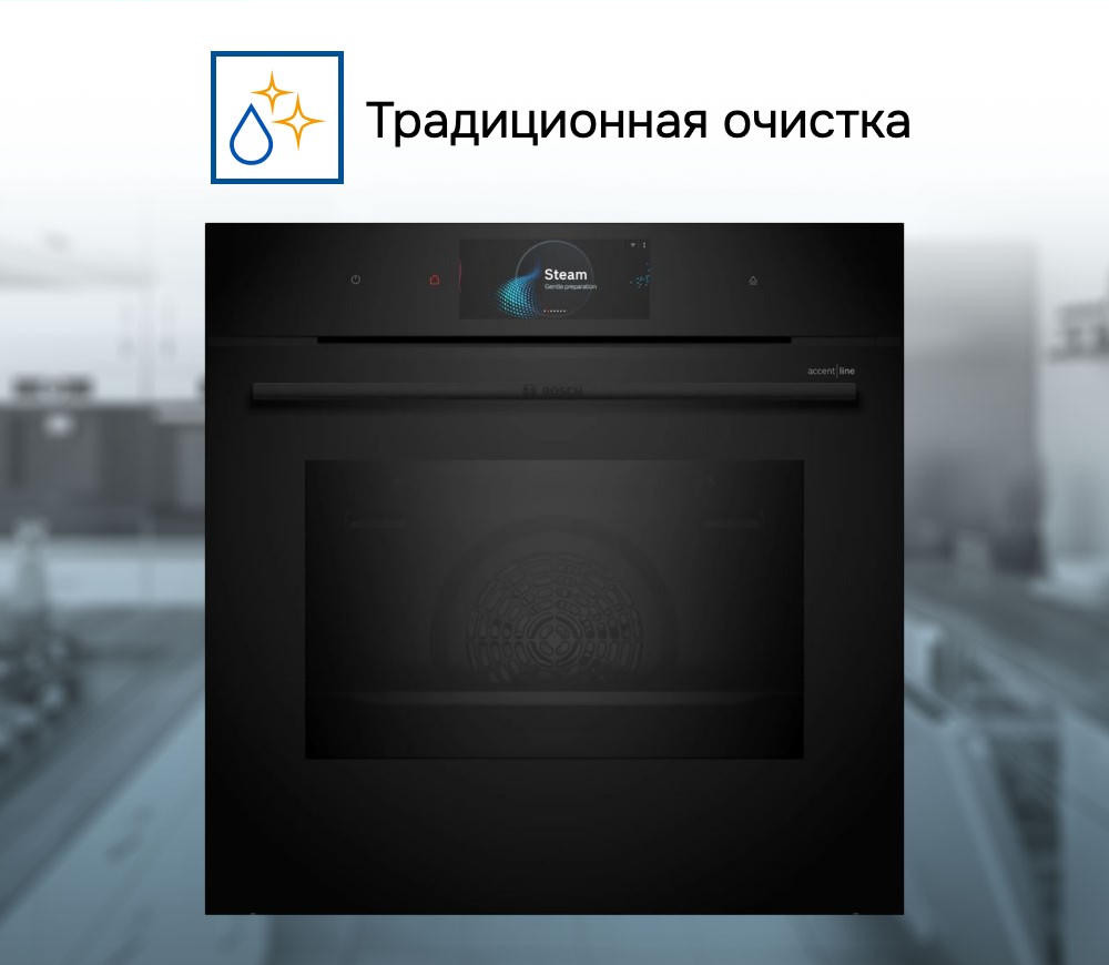Всё управление — через сенсоры и яркий цветной экран, на котором чётко видно время, режим и температуру. Не нужно листать инструкцию: духовка интуитивно понятна с первого касания. А если вы в другой комнате или уже в пути домой — легко запустить разогрев или проверить стадию готовки через приложение Home Connect. Это не «умная игрушка», а реальное удобство, которое экономит время и нервы.