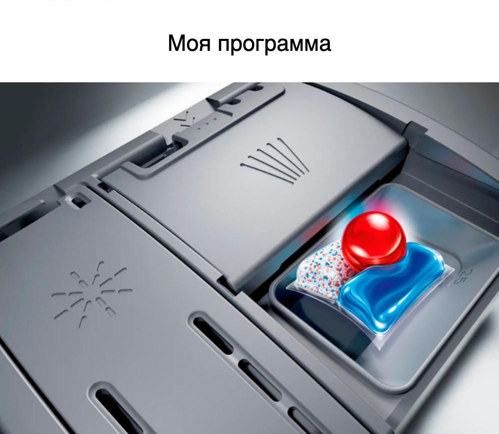 Модель оснащена тремя корзинами и переставляемым по высоте верхним коробом, что позволяет загружать до 14 комплектов посуды. Верхний короб оборудован полочкой для чашек, а направляющие для тарелок предусмотрены как в верхнем, так и в нижнем коробе. Система AquaStop и полная защита от протечек обеспечивают безопасность использования. Внутренний резервуар выполнен из нержавеющей стали и пластика, что гарантирует его долговечность и надежность. Техника Bosch поддерживает функцию Home Connect, позволяя управлять устройством через приложение на смартфоне. Также есть возможность отсрочки запуска от 1 до 24 часов. Индикаторы наличия ополаскивателя и соли, а также луч на полу InfoLight делают использование устройства еще более удобным.