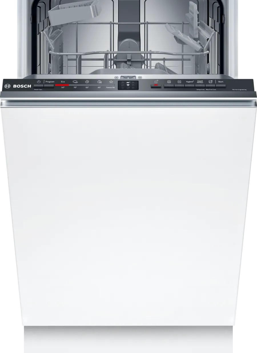 Встраиваемая посудомоечная машина Bosch SPV2IKX01Q создана для компактных кухонь и аккуратно интегрируется в мебельный ряд, занимая минимальную площадь без ущерба практичности. Черная панель управления стильно контрастирует с фронтальной поверхностью, а закрытая панель сохраняет лаконичный внешний вид при закрытой дверце и упрощает меблировку. Двухкорзинная компоновка с верхним отсеком, оборудованным двумя полочками для чашек, и нижней корзиной с ячейками и складными направляющими для тарелок обеспечивает гибкость при расстановке посуды, а корзина для столовых приборов упрощает загрузку приборов и ускоряет подготовку к мойке.