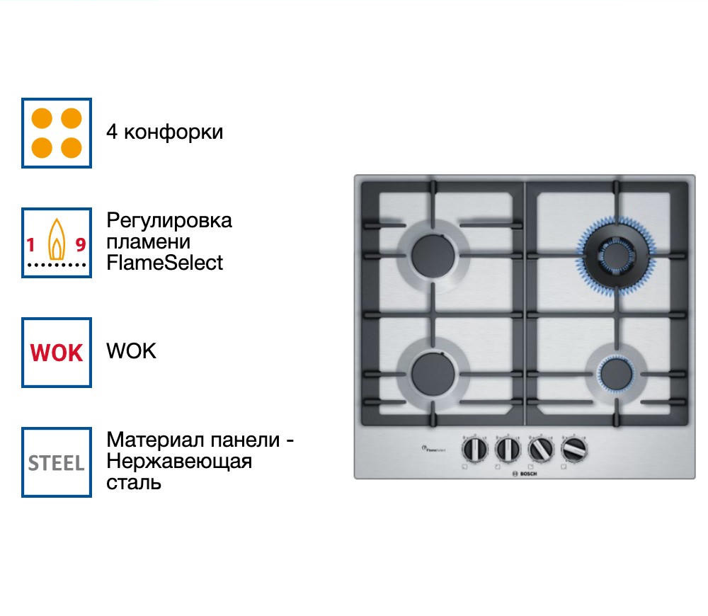 Гарантии безопасности и комфортной эксплуатации обеспечивает электроподжиг. Благодаря его наличию пламя загорается простым поворотом переключателя, без использования спичек и зажигалок. Варочная панель Бош PСH6А5B90R — залог безопасности.