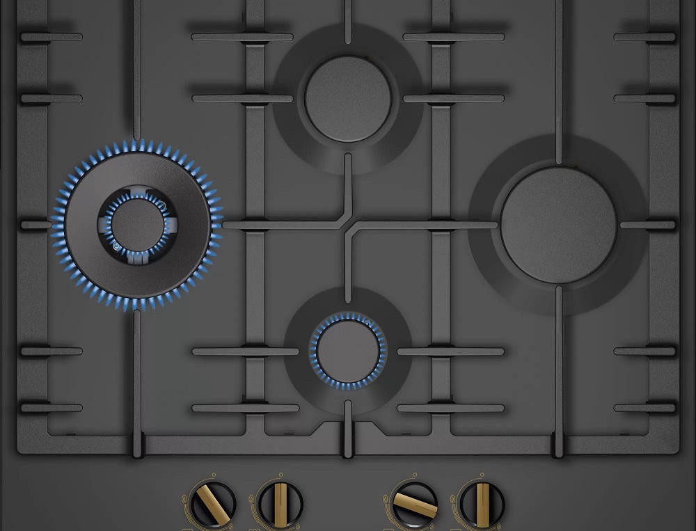 Теперь вы сможете использовать посуду любого диаметра, в этом помогут 4 мощные конфорки. Мощность одной конфорки 1 кВт, мощность второй — 1,75 кВт, третьей — 3 кВт и последней 4 кВт. Одна из которых имеет конструкцию «Двойная корона» и оборудована подставкой под вок-сковородки. Эта экспресс-конфорка она имеет два кольца пламени и предназначена для наиболее интенсивного нагревания. С помощью нее вы сможете создать атмосферу ресторана на домашней кухне и готовить блюда азиатской кухни в специальных сковородах, использовать казан и другую посуду с толстыми стенками.