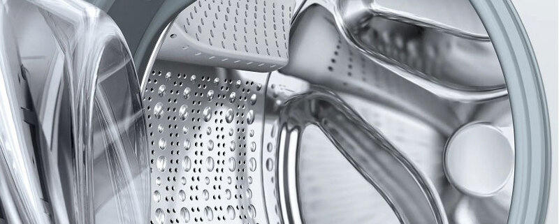 Обратите внимание на дизайн модели Бош WAX32E90ME. Несмотря на то, что в нее входит до 10 кг белья, она не выглядит громоздкой. Классический белый цвет поможет ей вписаться практически в любое пространство. А дуги и круги на боковых стенках будут гасить излишнюю вибрацию и шум, даже во время полоскания и отжима. Максимальная скорость отжима — 1600 оборотов в минуту, а уровень шума — до 71 Дб. Такие характеристики достигаются и благодаря современному бесщеточному мотору EcoSilenceDrive. Благодаря постоянным магнитам в его устройстве он чрезвычайно быстро достигает максимальной мощности. Такая конструкция более долговечна, чем щеточный мотор, а значит, машина прослужит вам долго.