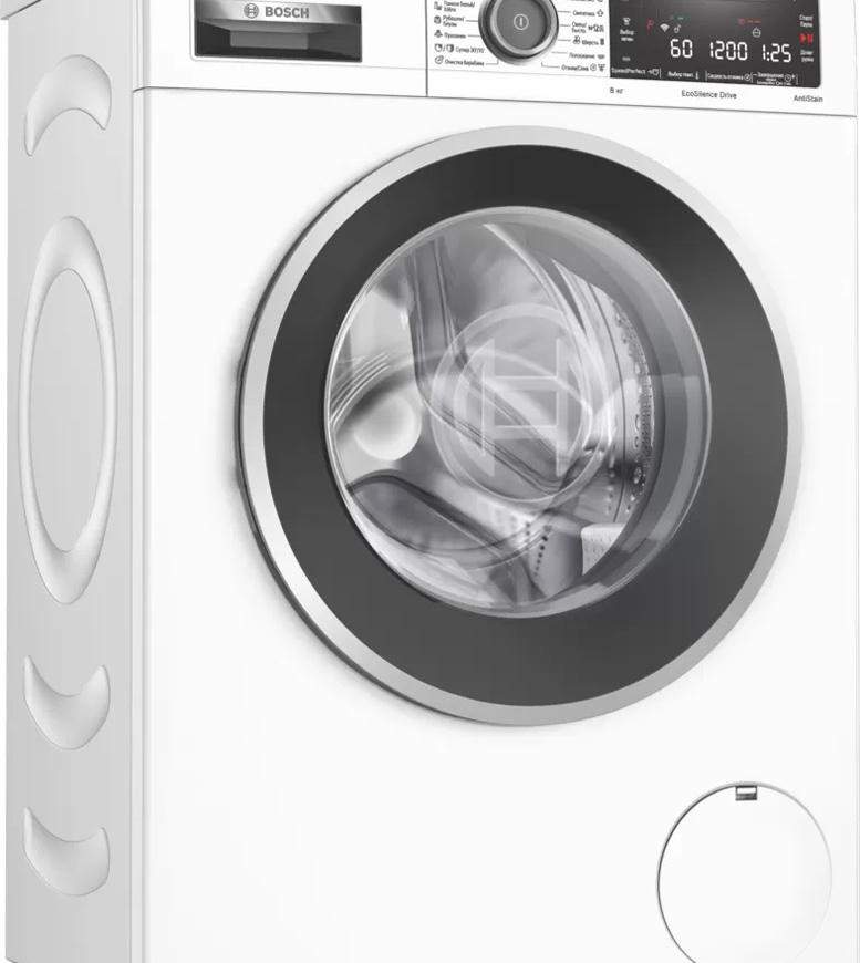 Стиральная машина BOSCH WLW24M4HOE выполнена в классическом белом цвете. Модель из Serie 8 относится к отдельностоящему типу с фронтальной загрузкой, максимальный объем которой составляет 8 кг. Благодаря функции Home Connect вы можете управлять устройством удаленно по Wi-Fi. Класс энергопотребления A является стандартным для данной единицы бытовой техники. Встроенная очистка барабана облегчает уход за ним. Инверторный двигатель EcoSilenceDrive является тихим и экономичным. Уровень шума в 60 дБ не доставит акустического дискомфорта обладателю. Максимальная скорость отжима равна 1200 об/мин. Материал барабана SoftCare Drum нержавеющая сталь, устойчивая к внешним воздействиям и длительному влиянию влаги и моющих средств. Электронное управление, простое и понятное, осуществляется по средствам сенсорных клавиш и поворотного переключателя. Многофункциональный LED-дисплей отображает всю необходимую информацию о работе. По окончании цикла вы услышите звуковой сигнал. Петли дверцы люка расположены слева. А благодаря особому дизайну возможна установка машины вплотную к стене или мебели, что позволит рационально использовать пространство в квартире. Гарантия от производителя составляет 12 месяцев с даты приобретения.