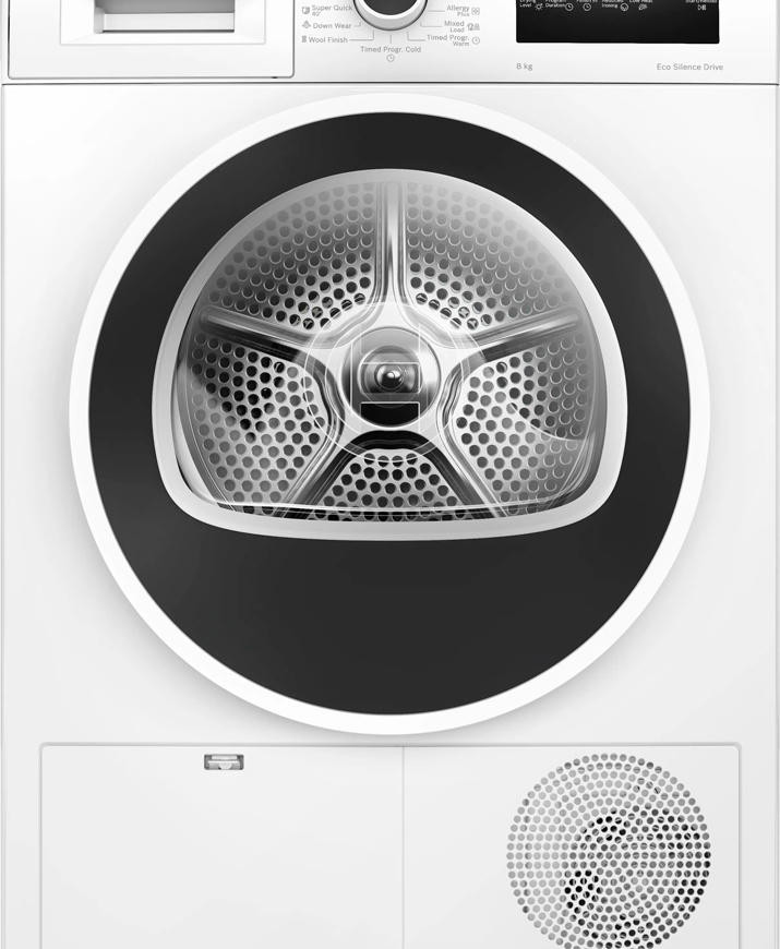 Ключевые преимущества- Эффективная конденсационная сушка с загрузкой до 8 кг и 12 программами для разных тканей.